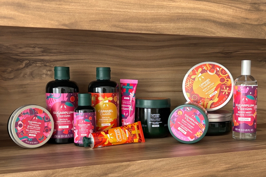 Obje kolekcije sastoje se od: gela za tuširanje, maslaca za tijelo, jogurta za tijelo i kreme za ruke. Iznimka je Sugarplum Passion kolekcija koja sadrži i mirisnu vodicu (Body Mist) te minijaturne verzije gela za tuširanje i maslaca – prikladnih za putovanja.