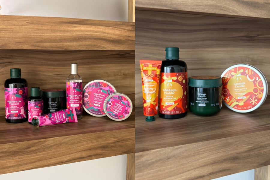 Razveselila sam se kada sam vidjela da The Body Shop ima posebne božićne kolekcije, tim više što me naziv Sugarplum Passion kolekcije podsjetio na omiljeni ballet – Orašara. S druge strane, Caramel Cuddle kolekcija podsjetila me na sve ukusne kolačiće čiji miris prožima cijeli dom tijekom blagdana.