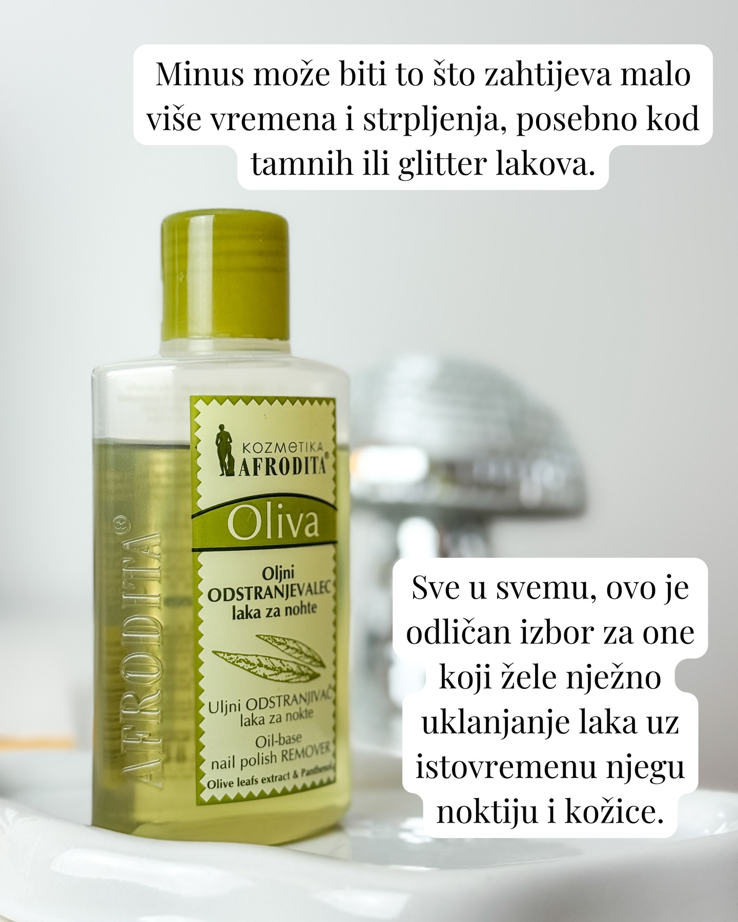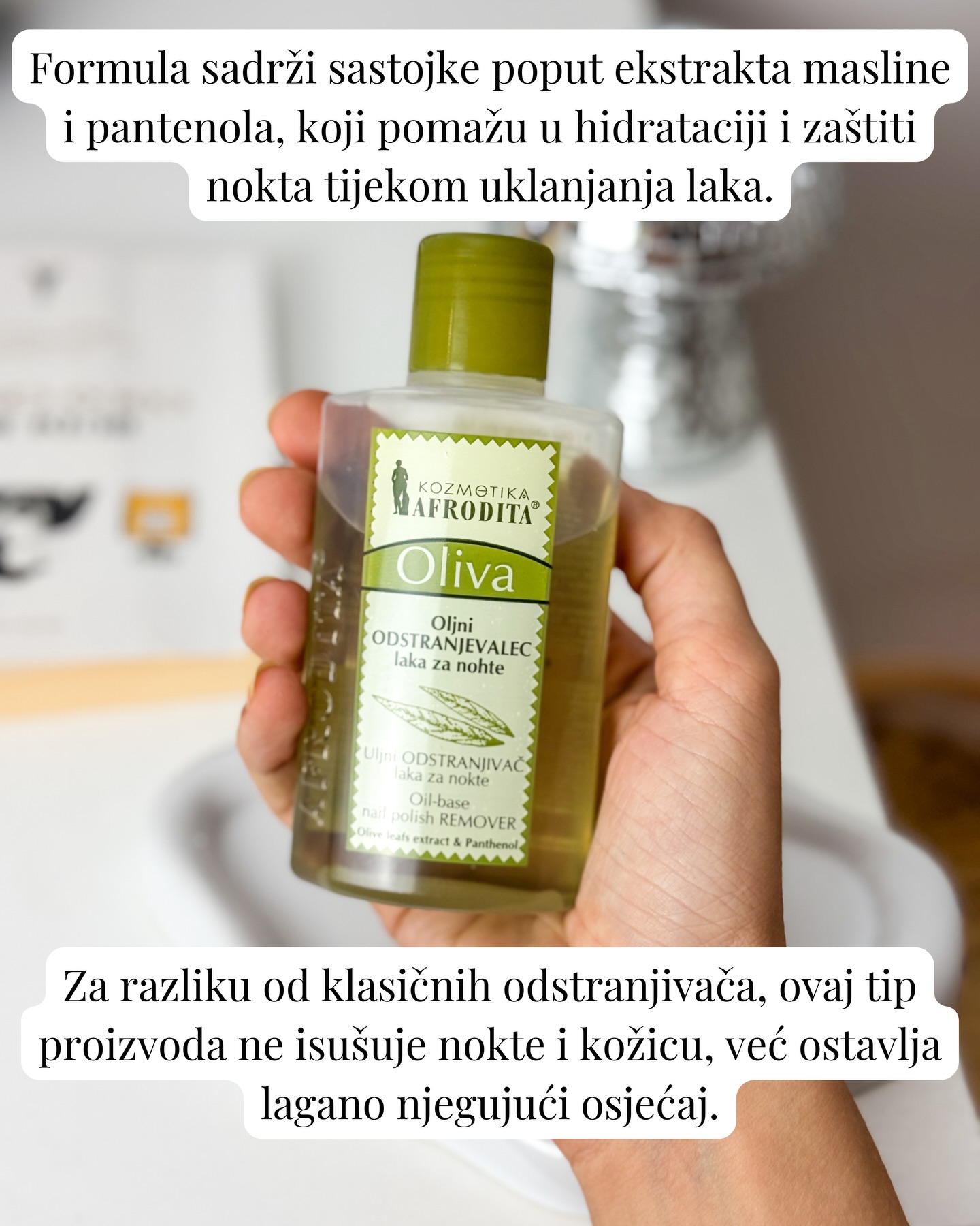 Nježan odstranjivač laka za nokte s uljnom formulom za jednostavno skidanje: Afrodita Oliva