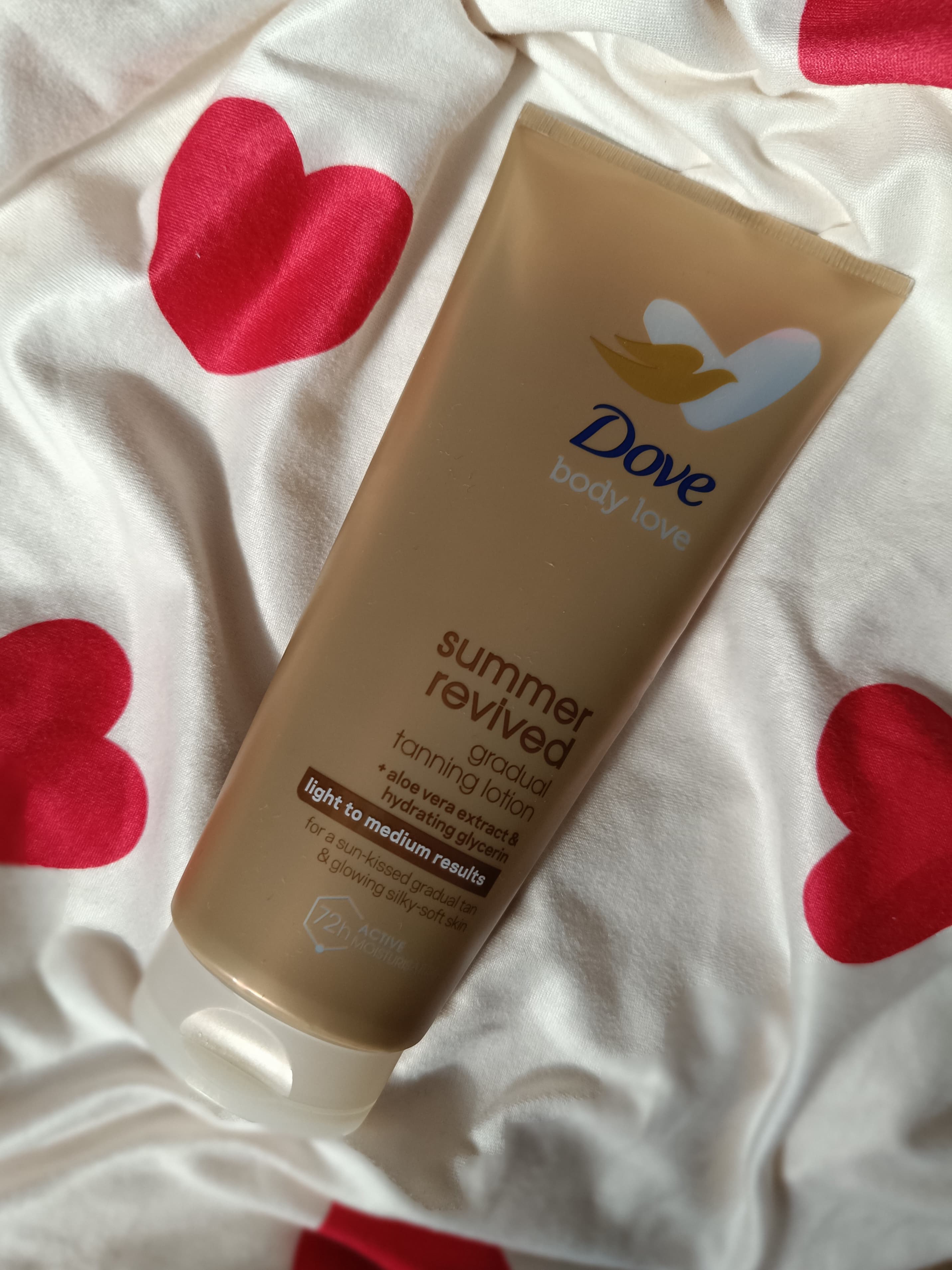 Kako zadnjih godina osvještavam da sunčanje nije dobro za kožu, a svejedno volim imati približno sličnu nijansu kože nogu i ostatka tijela, okrenula sam se isprobavanju losiona za samotamnjenje koji će mi pomoći pri ostvarenju tog cilja. Čak i kada sam se intenzivno sunčala, uvijek su mi noge bile dramatično svjetlije, što mi ne izgleda lijepo, pogotovo u vrijeme ljeta kada odjeća većinom otkriva noge. Ove sam se godine odlučila isprobati Dove DermaSpa Summer Revived mlijeko za samotamnjenje u nijansi Light to Medium, a kupila sam ga na Notinu po cijeni od otprilike 8 €. Sada ga upotrebljavam već nekoliko tjedana te u ostatku teksta donosim svoje dojmove.