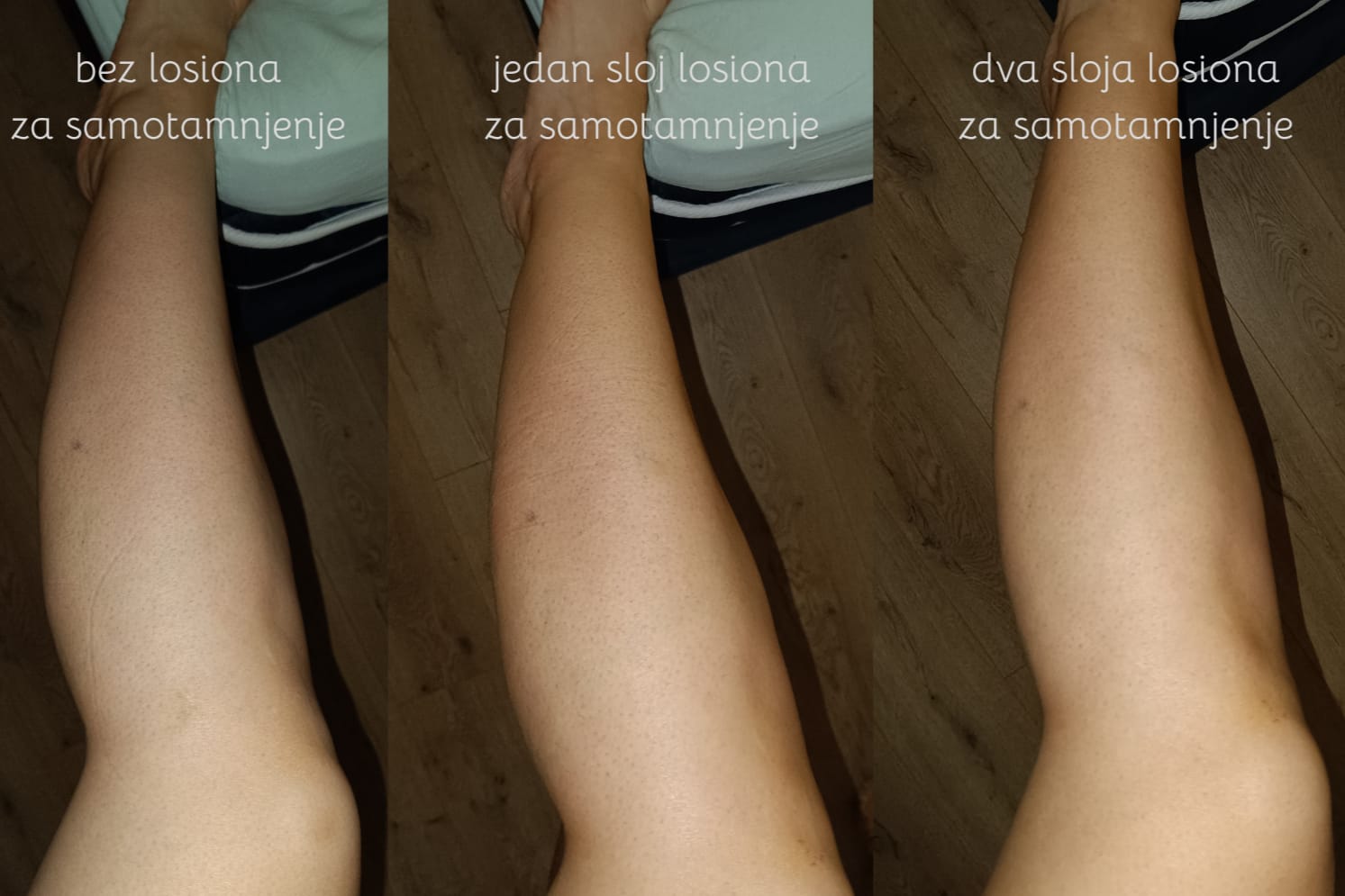 Primijetila sam da mi je potrebna zaista mala količina proizvoda kako bih namazala cijele noge – manje nego kada nanosim regularne hidratantne proizvode za kožu tijela. Upravo zbog toga uvjerena sam da će mi jedno pakiranje trajati cijelo ljeto, a možda i duže. Tekstura je srednje gusta, no samo mlijeko vrlo je mazivo. Pri nanošenju držim se pravila manje je više: kada se nanese (pre)više proizvoda, on se ne može upiti u kožu u potpunosti, što može dovesti do neujednačenog razvijanja preplanule puti. Iako je prije svakog proizvoda za samotamnjenje preporučljivo napraviti piling te hidratizirati kožu, priznajem da ovo ne radim. Moja koža nakon korištenja ovog mlijeka svejedno razvije ujednačenu brončanu put, a minimalno ističe dijelove kože koji su više suhi (poput koljena ili peta).