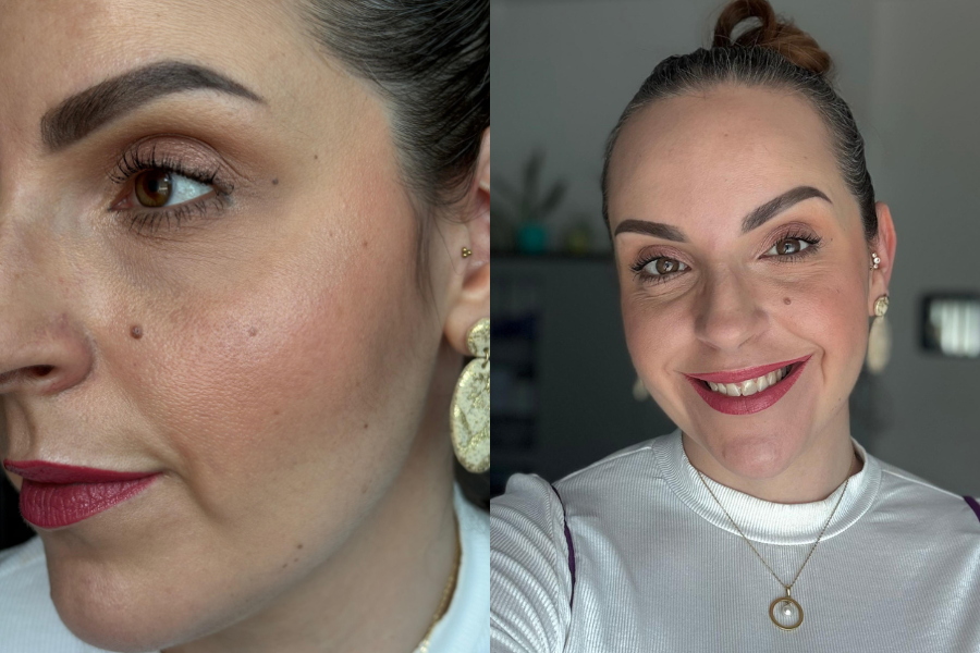 Nakon što ga nanesem nemam osjećaj težine; štoviše, nemam uopće osjećaj kao da imam puder. Usto, moja mi se nijansa 2.N Neutral idealno stopi s kožom. Testirala sam ga setiranog s puderom u prahu i bez njega te čak izgleda bolje kada ga ne setiram. Neposredno nakon nanošenja izgleda predivno – dao je mojoj koži svježinu prirodnog izgleda (u smislu "my skin but better").