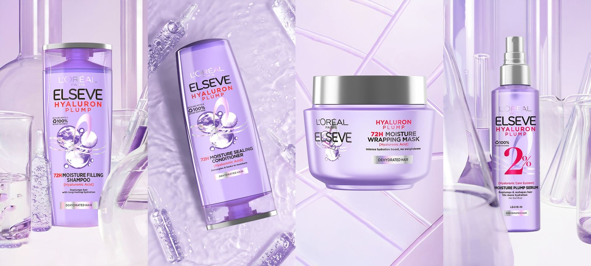 Za razliku od hijaluronske kiseline u skincare proizvodima koja za cilj ima prodrijeti u kožu, ovdje joj je primarna uloga obavijanje oštećenih vlasi kako bi služila kao njegujući i zaštitni sastojak. Osim što osnažuje barijeru kože vlasišta i smanjuje dehidraciju, formula s hijaluronskom kiselinom olakšat će raščešljavanje kose i time spriječiti dodatno opadanje koje uzrokuje grubo i iscrpno četkanje kose. U sklopu Elseve Hyaluron Plump linije pronaći ćete četiri proizvoda: