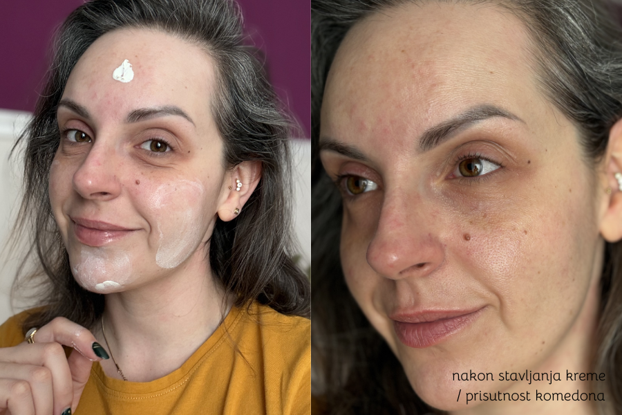 Budući da u sastavu ima nekoliko ulja, ima potencijal za izazivanje komedona – barem teoretski. U zadnje se vrijeme susrećem s malim bijelim prištićima na području nosa i čela, ali budući da sam u relativno kratkom vremenskom periodu uvela nekoliko različitih novih proizvoda (uključujući i kremu Nacomi Golden Rays), teško mi je zaključiti zbog kojeg se točno proizvoda to događa. U konačnici sam zadovoljna Nacomi hidratantnom dnevnom kremom Golden Rays.