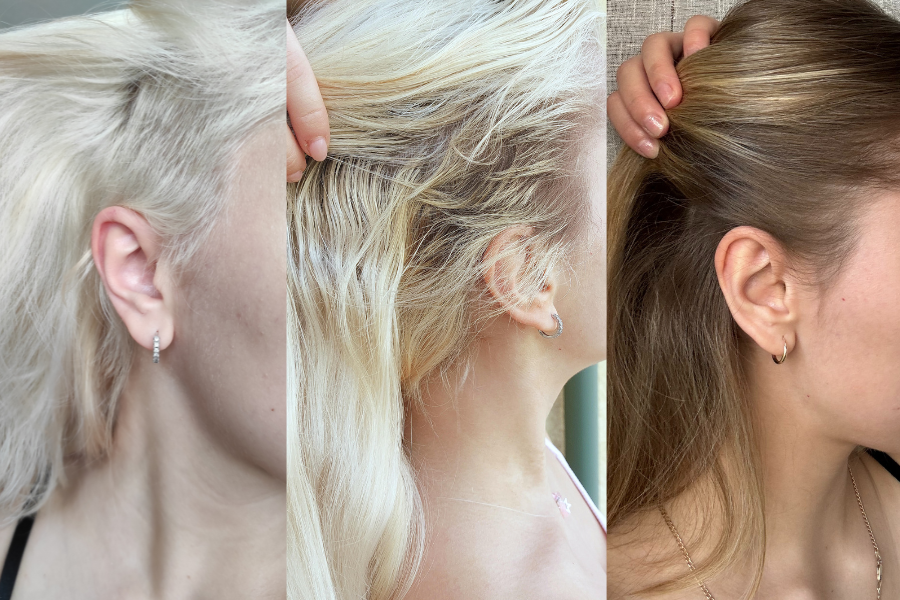 Ono što sam shvatila tijekom dvije godine, jest da ako želim "resetirati" svoju kosu i vratit joj zdravlje koje je nekad imala, morat ću smanjiti bojenje na minimum. Nakon incidenta s prvom frizerkom nastavila sam ići kod drugog frizera na bojenje izrasta koji me postupno kroz vrijeme nagovorio da prijeđemo na pramenove.