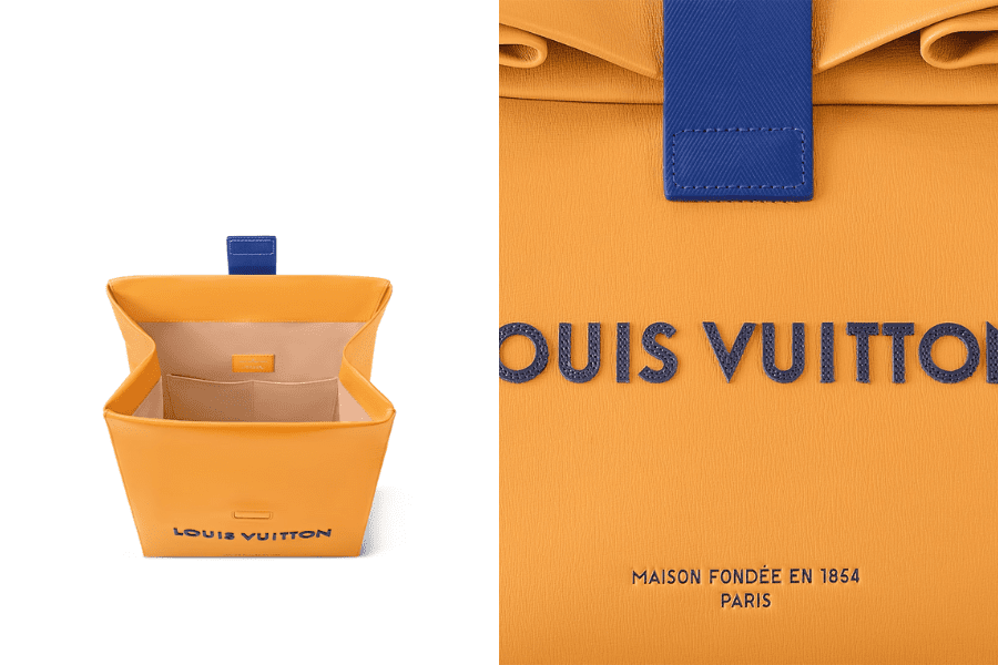 Ova torba za sendvič predstavljena je u pop-up trgovini brenda u West Hollywoodu po cijeni od 3130 američkih dolara, a izrađena je od podatne goveđe kože s otiskom legendarnog monograma brenda. Ovaj pomno dizajnirani "lunch bag" obećava poboljšati čak i najobičniju rutinu za ručak. S džepom s patentnim zatvaračem i dva ravna pretinca torba će bez problema smjestiti vaše gurmanske zalogaje, dok istovremeno odiše daškom luksuza. Dolazi s dvjema chic bojama, što osigurava da će vam zavidjeti svi u sobi za odmor. Dužine 30 cm, visine 27 cm i širine 17 cm, torba oponaša boju legendarnih torbi Louis Vuittona, s istaknutim slovima i prepoznatljivim plavim zatvaračem.