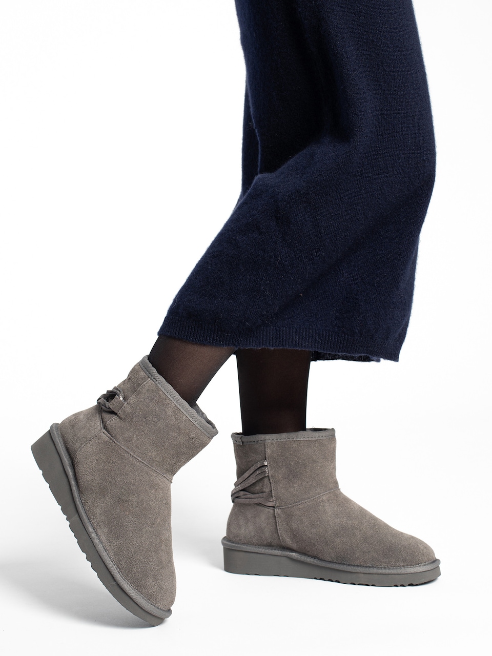 Gooce su još jedne čizmice s About You web shopa. Izrađene su od krzna i imaju potplat od kaučuka. Također imaju i simpatičan dodatak sa šest vrpci na zadnjem dijelu čizmi. Dolaze u lijepoj sivoj boji, a trenutačno su snižene na 69,99 €.