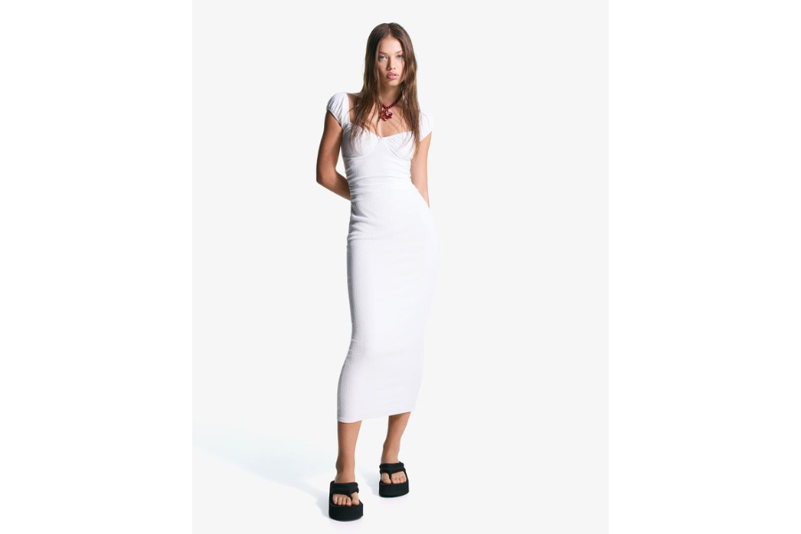7. Bershka, Midi bijela haljina – 22,99 €