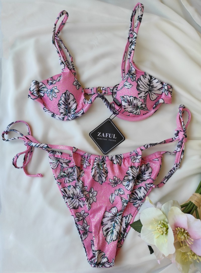 Rebrasti glitter monowire bikini s biljnim uzorkom