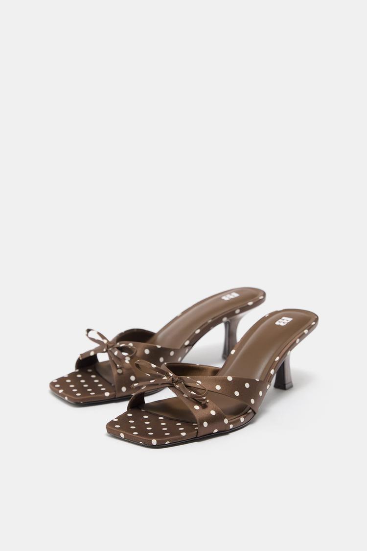 Zara, cipele s otvorenom petom i mašnom točkastog uzorka – 29,95 €