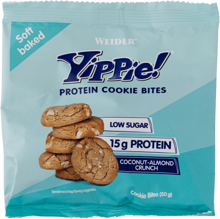 Tko može odoljeti hrskavim keksićima s čokoladom ili kokosom i stati samo na jednom? Nije nužno odreći ih se, već ih samo zamijenite boljom varijantom poput Yippie! kolačića koji imaju malo šećera, a bogati su vlaknima i bjelančevinama. Pakiranje od 50 grama sadrži 15 grama proteina.