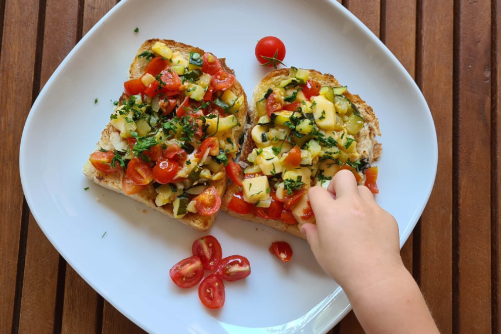 Hrskavo, svježe, ljetno! Odlične i lagane bruskete koje su se svidjele i mom 18-mjesečnom sinu koji nije mogao dočekati da ih mama ufotka! Dok sam pokušavala uloviti savršen kadar, njegove su male ručice već bile "u akciji". Ovo je jedan od onih recepata koji ne zahtijevaju puno, a osvajaju na prvu – savršen izbor za brzinski ljetni zalogaj. Uživajte u brusketima i ovim malim ručicama koje su me podsjetile koliko je hrana najbolja kada se dijeli.