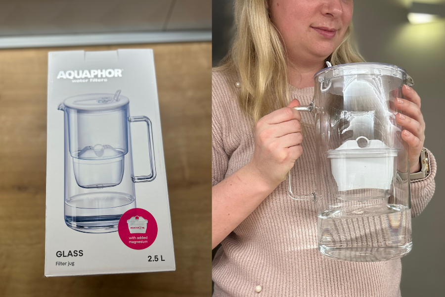 Sva tri Aquaphor proizvoda s filterima upotrebljavam na svakodnevnoj bazi i čudno mi je kada odem negdje drugdje gdje ih nema. Prvi je Aquaphor stakleni vrč za pročišćavanje vode. Obično su svi vrčevi s filterima koje sam vidjela po dućanima plastični, no ovaj je stakleni. Meni je to velika prednost jer ne može biti isti okus vode iz plastičnog ili staklenog vrča – iz staklenog je puno bolji.