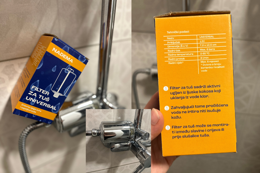 Treći Aquaphor proizvod koji upotrebljavam jest filter za tuš. Naravno, tu mi nije naglasak na okusu vode jer ju ne pijem tamo, no mogu reći da mi je kosa jako mekana nakon pranja uz filter. Budući da imam prijatelja koji ima atopijski dermatitis, ovaj je filter idealan za sve koji imaju kožne probleme. Glavni sastojak filtera jest aktivni ugljen. Smatram da ga svatko može postaviti na tuš jer sam to bez problema uspjela i ja koja inače nisam baš spretna u takvim aktivnostima.
