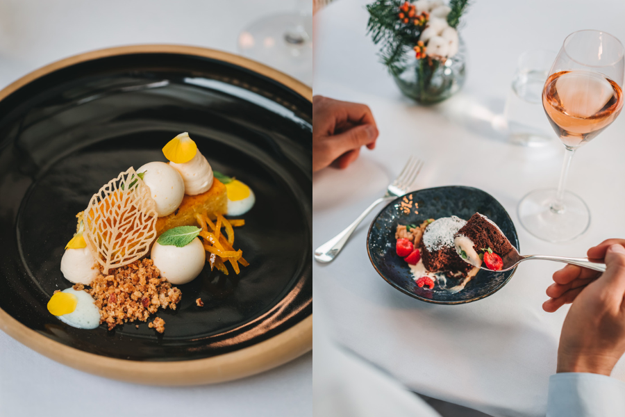 Na jelovniku su i neizostavni klasici, a uz zapečene štrukle tu su i Cezar salata, zapečena francuska juha od luka, kao i primamljivi bečki odrezak s pire-krumpirom. Slastice iz Esplanadine slastičarnice savršeno zaokružuju cijelo iskustvo objedovanja u Le Bistrou, a dio primamljivog zimskog izbora čine badem streusel s kremom od naranče i badema te neobični biskvit od cikle i tamne čokolade koji sjajno dopunjuje mousse od jogurta i višnje.