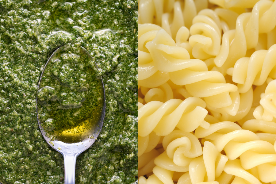 4. Pesto prelijte preko kuhane tjestenine s 1 dcl vode u kojoj se tjestenina kuhala. Sve dobro promiješajte i poslužite.