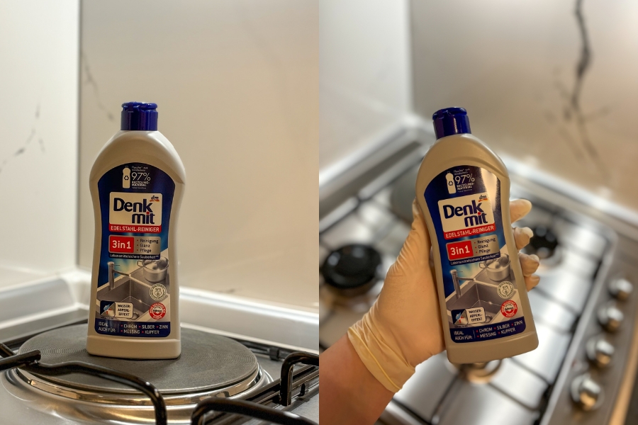 U dm drogeriji pronašla sam ovo posebno sredstvo za čišćenje, a riječ je o njihovom Denkmit brendu koji mi se i ranije puno puta pokazao kao odličan. Cijena ovog proizvoda je 0,95 eura, a možete ga pronaći u svim dm drogerijama te na službenoj web trgovini. Riječ je o proizvodu koji dolazi u manjoj plastičnoj boci te sadrži 300 ml proizvoda. Kako navode, riječ je o 3u1 sredstvu za čišćenje koji otklanja mrlje od vode i masnoću sa sjajnih površina od inoksa i keramike. Također, može se koristiti i za predmete izrađene od kroma, srebra, bakra, mesinga i kositra. Prirodni vosak stvara sloj zaštite pa će površine i / ili predmeti izgledati čisto i sjajno.