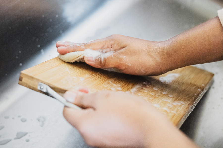 Drvene daske za rezanje praktične su zbog svoje izdržljivosti, atraktivnosti i otpornosti na tragove noža. Pravilno čišćenje nakon svake uporabe ključno je za sprječavanje širenja bakterija i održavanje opće higijene vaše kuhinje. Zbog svoje porozne prirode drvene površine mogu apsorbirati tekućine i čestice hrane. Svakodnevnom upotrebom na ploči se stvaraju mali urezi i brazde stvarajući pogodno tlo za razmnožavanje bakterija. Upotreba prirodnih sredstava za čišćenje osigurava da štetni ostaci ne ostanu u urezima daske što ih čini izvrsnim izborom za površine koje dolaze u dodir s hranom.