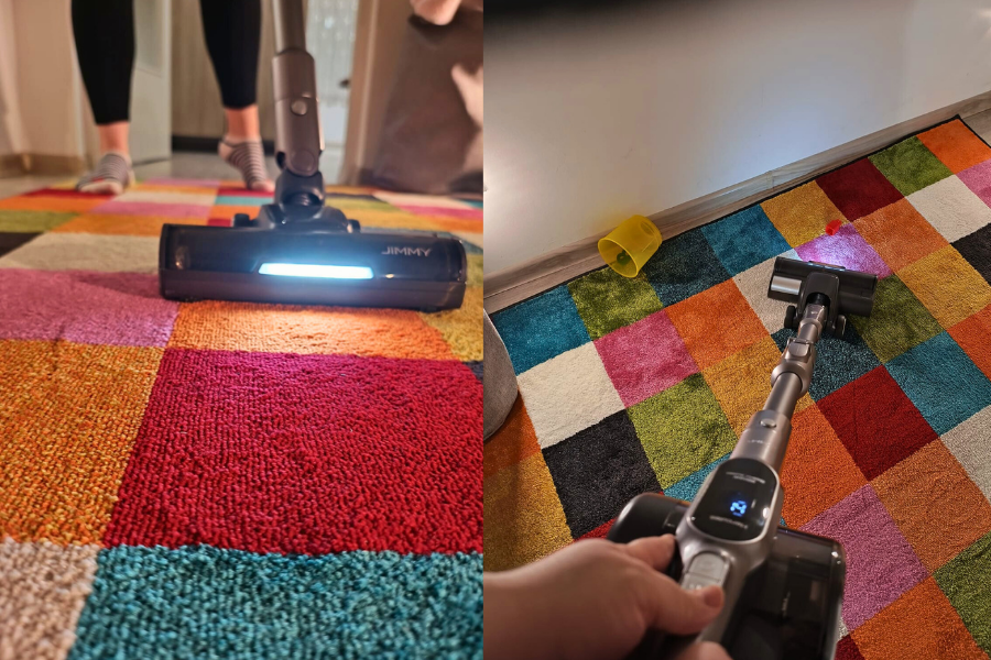 Najveći plus mu je rastezljivo crijevo koje uz određene nastavke čini dobitnu kombinaciju za skidanje paučine. Moja kutna garnitura kupljena je malo nepromišljeno - poprilično je niska i jako je teško usisavati ispod nje jer bi mi prijašnji usisavač, isto kao i onaj robotski, uvijek zapeo pa se moram "mučiti" da ga izvučem nazad. JIMMY H11 Pro nije nijednom zapeo, uspjeli smo usisavati cijelo područje ispod kutne garniture jer mu je drška jako fleksibilna i savija se čak pod 90 stupnjeva.