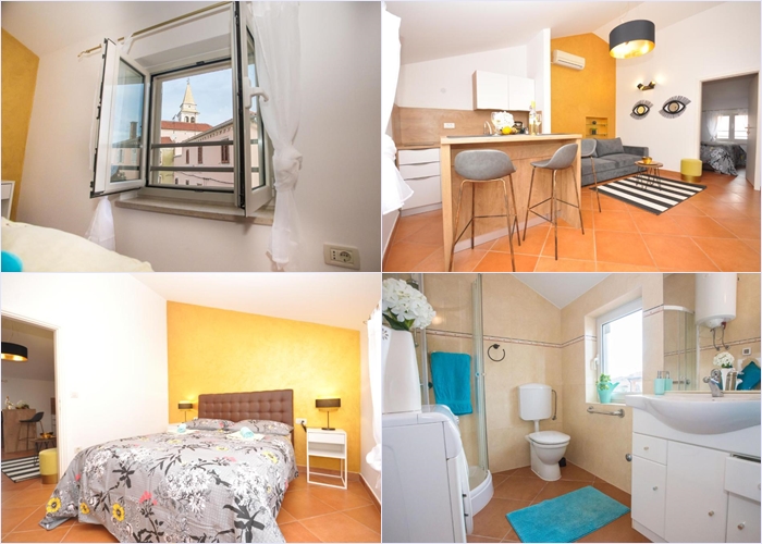 Ovaj apartman nalazi se u Poreču. Ima pogled na grad, u samom je centru gdje su i mnoge znamenitosti, a plaže su udaljene oko 700 m. Na udaljenosti svega nekoliko metara nalaze se brojni kafići i restorani. Obroci nisu uključeni u cijenu smještaja. Prijava u smještaj moguća je od 14,00 h, a odjava do 10,30 h. Pušenje, zabave i kućni ljubimci nisu dozvoljeni. Sav namještaj u apartmanu poprilično je novi i moderan te je uređenje vrlo lijepo. Međutim, oni koji vole neposrednu blizinu plaže, ova će udaljenost možda biti malo velika.