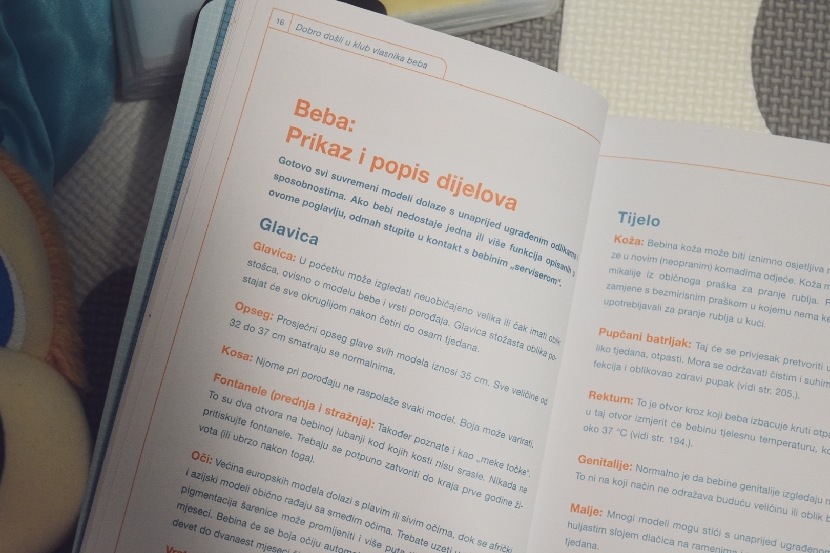 Pisana je kao uputstvo za uporabu koje dobijemo uz neki proizvod, aparat ili nešto slično. Naravno, beba nije stvar i ne može se pokvariti, ali beba je nešto što je brojnim roditeljima novost pa su jednostavno objašnjenje i upute uvijek dobrodošli. Tehnički izrazi ovu knjigu čine drugačijom i zanimljivom, no savjeti i upute koje daje, njezin su najvažniji dio.