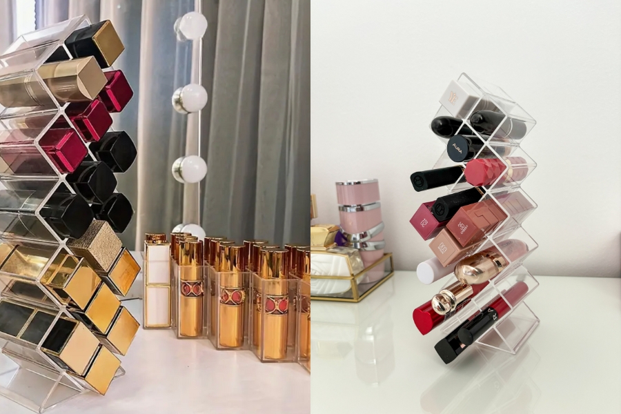 Nastavno na temu organizacije, poželjela sam isprobati malo drugačije organizatore za šminku. Volim kad mi je sve složeno i nadohvat ruke, ali i jasno vidljivo kako ne bih zaboravila što sve imam. Odlučila sam se za narudžbu dvije vrste akrilnih organizatora kakve do sada nisam pronašla nigdje u našim trgovinama. Jedan je klasična vrsta organizatora s pregradama koji sam stavila u ladicu svoga stola i složila proizvode u kamenu / prahu, a organizator koji me posebno oduševio, namijenjen je za ruževe i možete ga držati uspravno ili poleći. Stali su mi svi ruževi i sjajila koje imam i zaista mi se sviđa kao dodatak na stoliću.