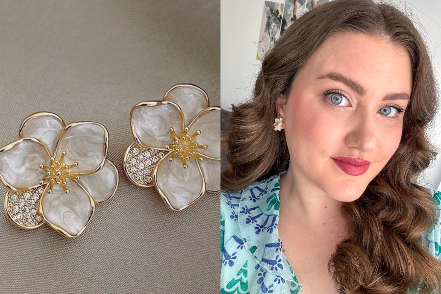 Započinjem s proizvodima koji su ispali zaista odlični, a od kojih nisam imala prevelika očekivanja. Slaba sam na lijep nakit, ali najčešće nosim bižuteriju jer volim mijenjati razne komade nakita (kupovina pravog nakita u toj količini ne dolazi u obzir). I tako su među prvim artiklima u mojoj košarici bile i razne naušnice, a sve po vrlo povoljnoj cijeni. Jedne od omiljenih upravo su ove u obliku bijelog cvijeta sa zlatnim detaljima. Naušnice su srednje veličine i kao takve nisu upadljive, a lijepe su i nešto drugačije od onih koje možemo pronaći u našim trgovinama.