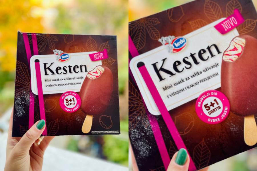 Kad se spoji nostalgija za jesenskim danima i ljubav prema sladoledu, dobijemo proizvod koji je puno više od obične poslastice. Ledo sladoled kesten zamotan u praktične mini porcije na štapiću vraća me u djetinjstvo i budi sjećanja na miris pečenog i kuhanog kestena koji su pripremali baka i djed. Oduvijek volim kestenje – miris, okus i onaj toplinski efekt dok ga jedeš u hladnim jesenskim večerima. A sada zahvaljujući Ledovom novitetu ta toplina prenesena je u ledenu, ali ukusnu i kremastu verziju na štapiću.