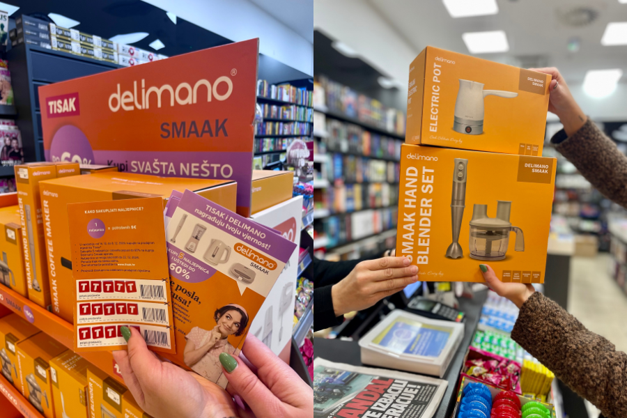 Tisak loyalty omogućava značajne popuste na Delimano kućanske aparate, a traje do 8. 12. 2024. Kako biste ostvarili popuste potrebno je prikupiti naljepnice za kupnje ostvarene na Tisak kioscima. Na svakih potrošenih pet eura dobivate jednu naljepnicu, a kada prikupite potreban broj naljepnica, točnije njih pet, možete kupiti Delimano uređaje s popustom do čak 60 %!
