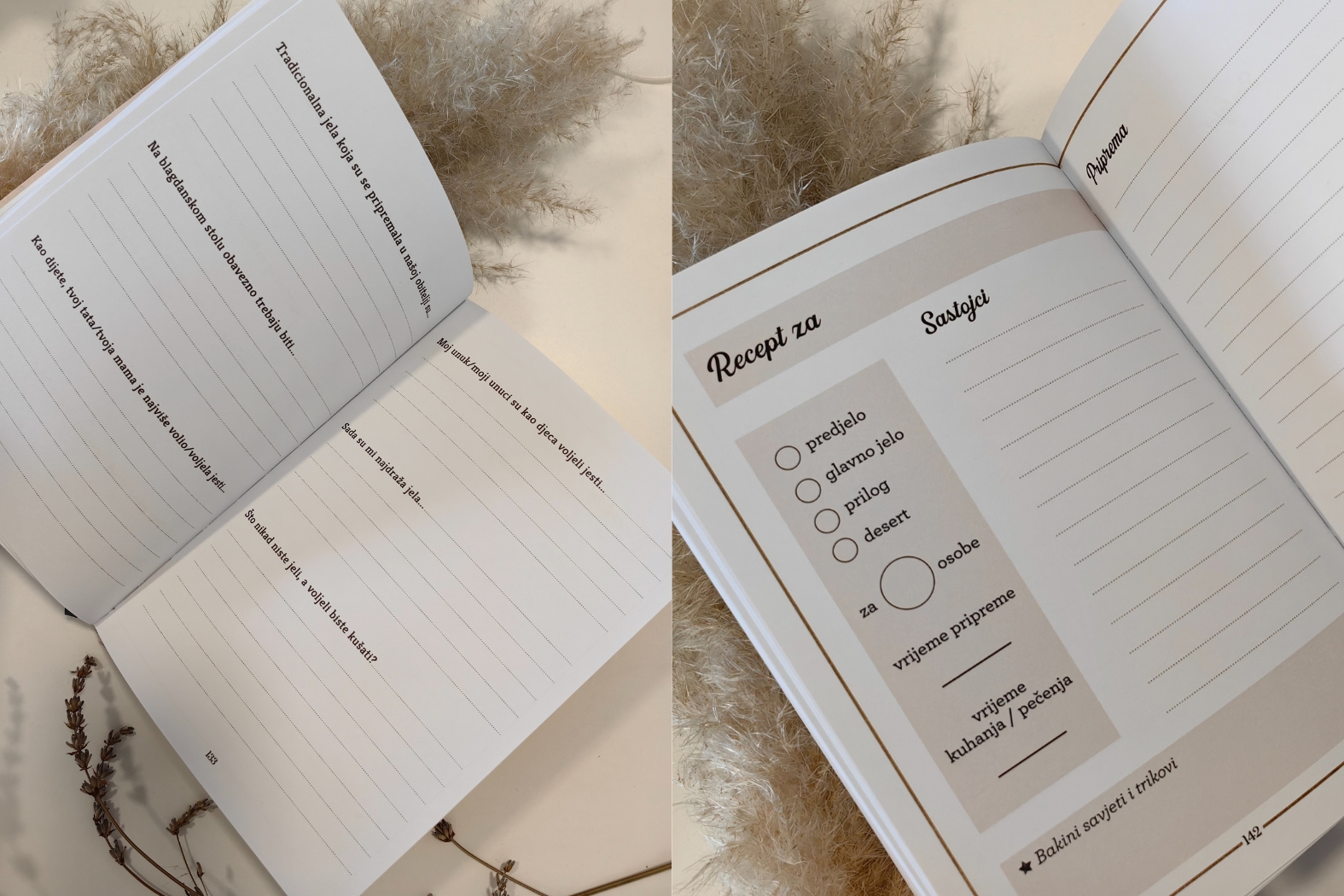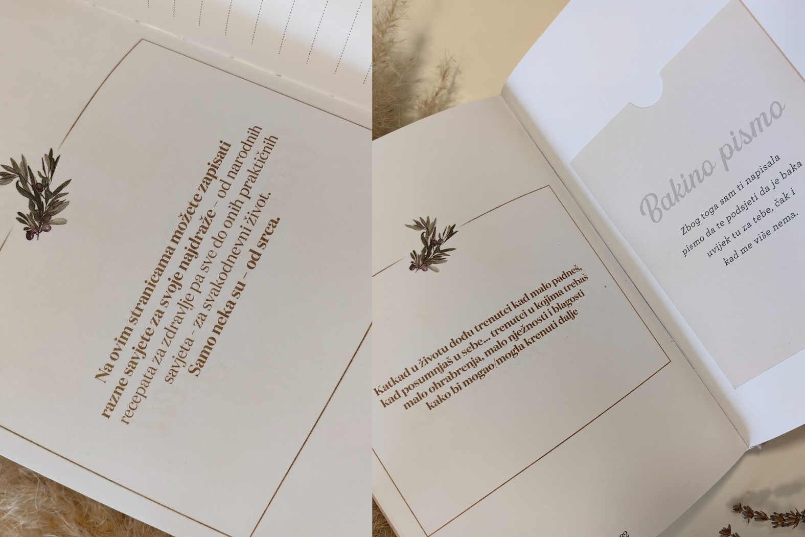Najviše me raznježila zadnja stranica koja sadrži „džepić“ za bakino pismo na kojem piše da je baka napisala pismo da me podsjeti da je uvijek tu za mene, čak i kad je više nema. Pismo za trenutke kada posumnjam u sebe, kada trebam malo ohrabrenja ili nježnosti i blagosti kako bih mogla krenuti dalje. Ovi jedinstveni spomenari povezuju generacije, čuvaju priče, trenutke i sjećanja najmilijih za buduće naraštaje.
