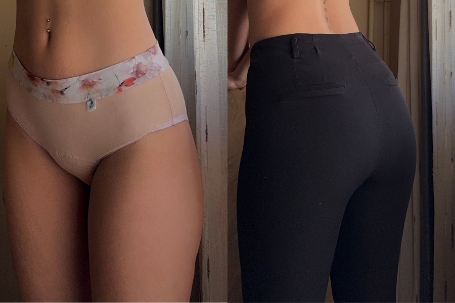 menstrualne gaćice i platneni ulošci ispod odjeće izgledaju identično kao obične gaćice i ulošci