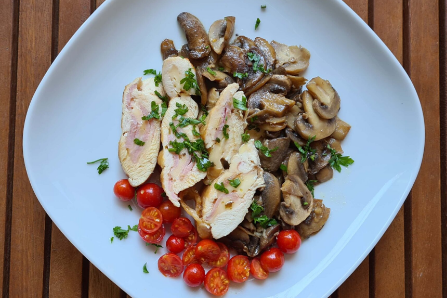 Pileći file punjen sirom i šunkom u umaku od šampinjona