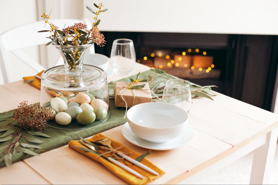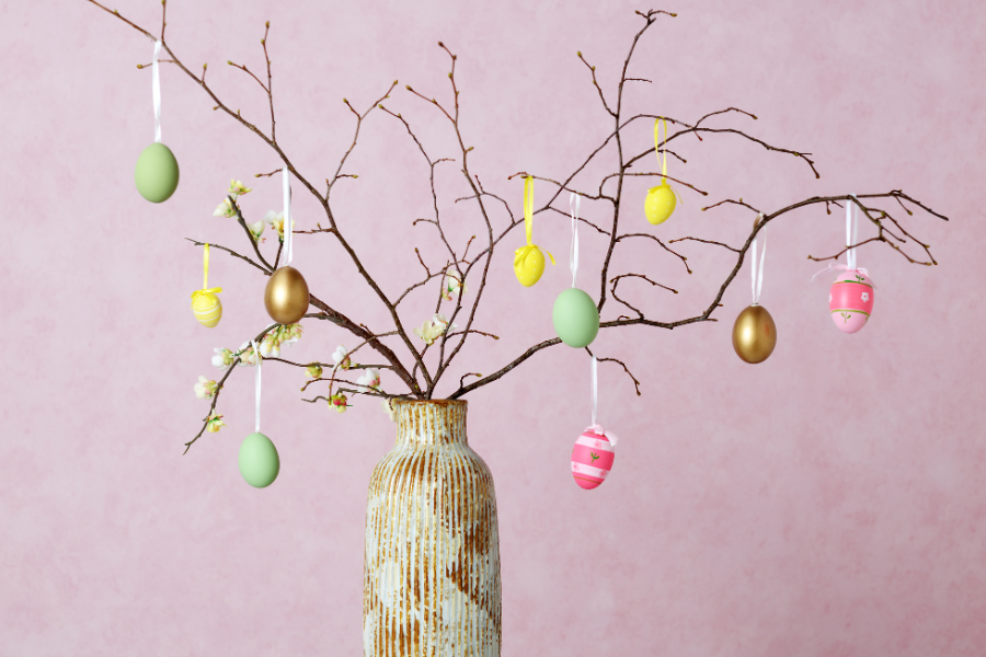 Uskrs povezujemo s rađanjem novog života, a i uvijek se odvija početkom proljeća kada sve cvjeta. Najjednostavniji način za ukrašavanje doma jest dodavanje živog cvijeća poput aktualnih narcisa, zumbula i đurđica. Osobno obožavam cica mace, a one mogu poslužiti i kao dekoracija jer poprilično dugo traju. Čak ih možete iskoristiti i kao mini drvce za ukrašavanje plastičnim pisanicama. Dašak proljeća unijet ćete i prigodnim pastelnim bojama, a to možete učiniti kroz odabir posuđa, šarenih stolnjaka i krpa, ukrasnih jastučića i dekica te drugih dekorativnih predmeta.