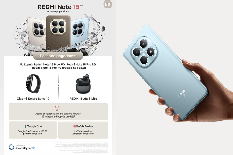 Za Pro modele iz nove REDMI Note 15 serije, sve do kraja veljače vrijedi promo ponuda – uz kupnju REDMI Note 15 Pro+ 5G i REDMI Note 15 Pro 5G uređaja na poklon se dobiva Xiaomi Smart Band 10 i REDMI Buds 8 Lite. Nova REDMI Note 15 serija sastoji se od pet modela: REDMI Note 15 Pro+ 5G, REDMI Note 15 Pro 5G, REDMI Note 15 Pro, REDMI Note 15 5G i REDMI Note 15.