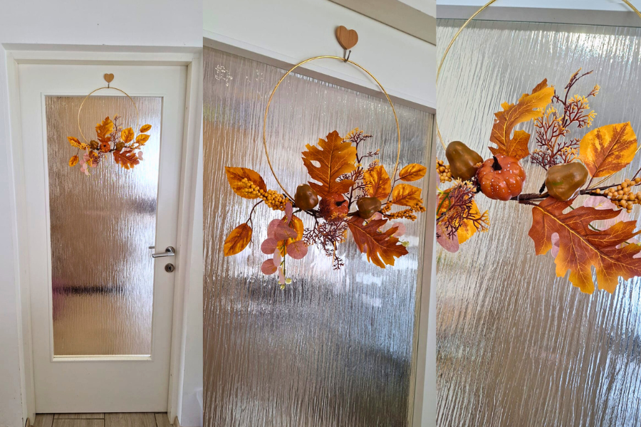 Ukras koji volim više od bilo koje dekoracije su vjenčići za vrata pa ni ovoga puta nisam izišla iz trgovine bez njega. Ovaj je vjenčić prikladnih dimenzija za ulazna vrata, a ja ga držim na ulaznim vratima dnevne sobe kako mi ga vjetar, sunce i kiša ne bi oštetili. Platila sam ga 3,49 eura.